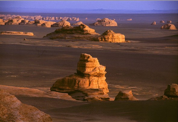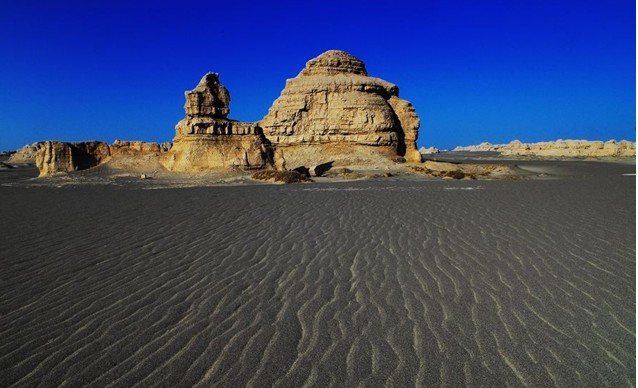 白天,遠(yuǎn)遠(yuǎn)望去,沙漠幻景猶如煙波浩渺的大海,整個(gè)"雅丹魔鬼城"恍若飄浮其中。傍晚蜃景隱去,整個(gè)"雅丹魔鬼城"籠罩在夕陽(yáng)余輝下,金碧輝煌中更顯幾分神秘,幾分肅穆。夜幕降臨后,狂風(fēng)呼嘯,整個(gè)"魔鬼城"又陷入恐怖的氣氛中,令人毛骨悚然。