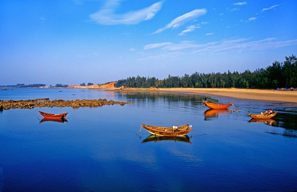 三娘灣位于欽州市犀牛腳鎮(zhèn)東面約5公里處海灣邊,距離欽州市區(qū)約38公里,南臨北部灣,背倚烏雷山,掩映在枝繁葉茂的紅樹林里的海灘潔白柔軟,站在如天外流星墜落海灘的三婆石上,朝可觀旭日東升,晚可賞夕陽斜照;版權(quán)所有山東聊城聊之旅國際旅行社有限公司,轉(zhuǎn)載必究!還可拜烏雷伏波廟、游威德寺、觀東漢大將風(fēng)采;更妙的是登上漁船出海觀光,品海鮮、沐海風(fēng),觀賞珍奇的中華白海豚,盡享藍(lán)天碧海、人歡魚躍的情趣。