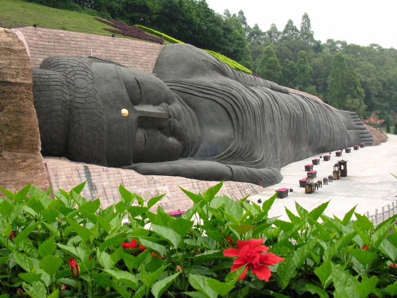 大臥佛位于森林公園天仙巖。相傳當(dāng)年佛教大師六祖惠能傳教后深夜經(jīng)過這里,看到天仙巖靈光閃爍,隱約可見這塊橫臥的大石塊就是一個(gè)大臥佛,六祖立即跪拜,求佛祖降福天下。大臥佛的雕造從這個(gè)傳說獲取靈感,以盛唐敦煌臥佛為范本,佛身長108米,尺度堪稱世界之最。現(xiàn)經(jīng)改造用紫銅包裝大臥佛,版權(quán)所有山東聊城聊之旅國際旅行社有限公司,轉(zhuǎn)載必究!成為金裝大臥佛。大佛前面是錦鯉池和荷花池,與大佛相互映襯引人入勝。大佛對岸一層為長六十米的長廊,廊內(nèi)彩繪佛傳故事,二層為敬佛臺,憑欄對拜,大佛全景一覽無遺。