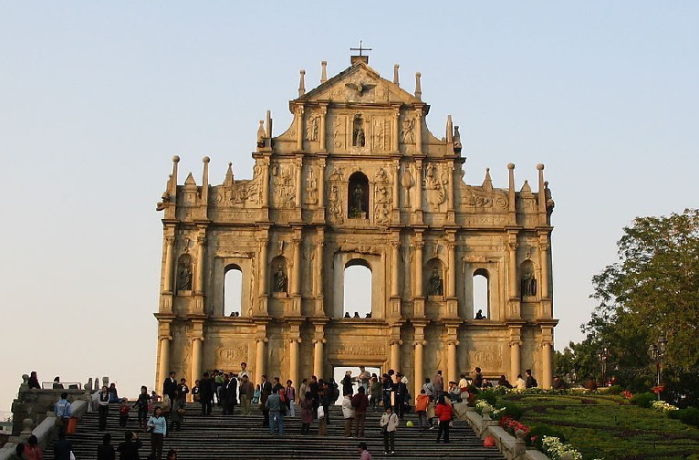 大三巴牌坊(Ruins of St.Paul),是澳門最具代表性的名勝古跡,為1580年竣工的圣保祿大教堂的前壁,此教堂糅合了歐洲文藝復(fù)興時(shí)期與東方建筑的風(fēng)格而成,體現(xiàn)出東西藝術(shù)的交融。雕刻精細(xì),巍峨壯觀。