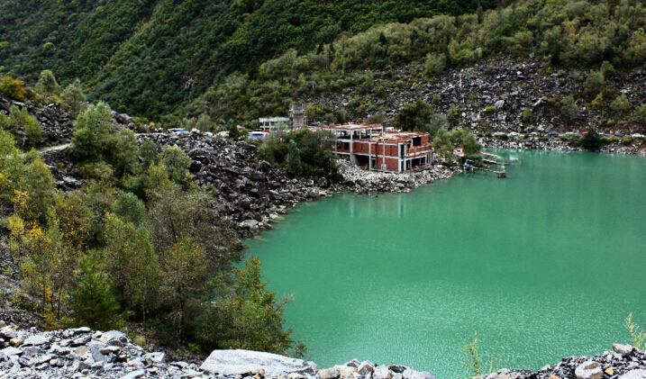 “黃龍旅游股份”開發(fā)的疊溪海子主要景區(qū)有:疊溪地震遺址景觀;疊溪上、下海子;疊溪古城遺址;點(diǎn)將臺(tái);富貴山;偷油洞;玉壘洞;神龜回游等美不勝收的自然景觀。清晨時(shí)分,登上高聳于湖畔的碉樓,俯瞰全景,碧玉般的水面灑滿金色的陽(yáng)光,令人迷醉,幾乎忘記隱藏在寧?kù)o與碧綠中的那次災(zāi)難,幸好有怪石林,那是地震一番滾落堆積后,在岸坡上留下的奇特景觀,告訴人們這份美麗所付出的代價(jià)。