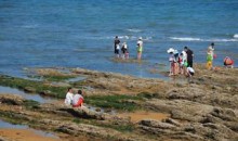 趕海撿貝園內(nèi)礁石密布,奇石林立,千姿百態(tài),物產(chǎn)豐富,有各種貝類、魚、蝦、蟹、海螺、海參、海菜等海產(chǎn)品,一年四季可趕海拾貝、挖蛤、垂釣。每天落朝時(shí),海水退卻3公里左右,是趕海撿貝的好時(shí)機(jī)。夜晚沙灘篝火晚會(huì),載歌載舞,更是令人情舒暢。