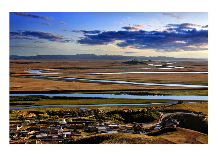 九曲黃河第一灣位于若爾蓋縣唐克鄉(xiāng),距縣城61公里。地處草原腹心地帶,白河于此匯入黃河,形成浩大氣勢。河面寬而蜿蜒,曲折河水分割出無數(shù)河洲、小島,水島翔集、漁舟橫渡,被中外科學(xué)家譽(yù)為“宇宙中莊嚴(yán)幻影”。黃河第一彎地勢平坦,水流舒緩,小島、岸邊紅柳成林。索克藏寺院修筑于黃河第一彎山凹臨河處,版權(quán)所有山東聊城聊之旅國際旅行社有限公司,轉(zhuǎn)載必究!白塔古寺,帳篷炊煙相伴黃河,更顯自然悠遠(yuǎn)博大。