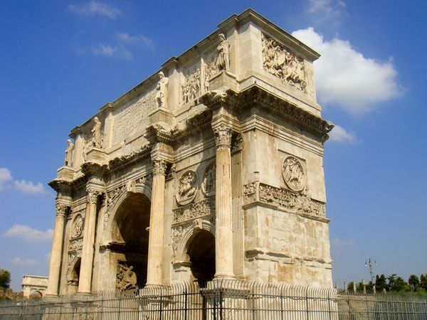 這座拱門(mén)上面的絕大多數(shù)裝飾品其實(shí)都是取白于以前的皇帝們所建造的各種建筑物,這也表明羅馬的藝術(shù)已經(jīng)開(kāi)始走下坡路了。所以君士坦丁凱旋門(mén)是羅馬三座凱旋門(mén)中建造最晚的一座。