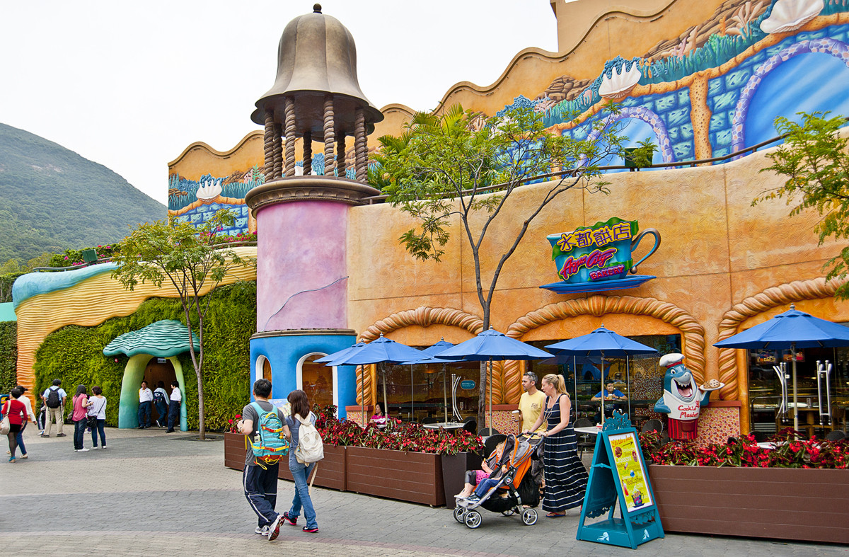 在水母萬花筒展館上方新開辟的兩間海景餐廳,一間是擁有二百七十度無敵海景的“灣景餐廳”;另一間則是香港第一間露天高山海景茶座“嵐灣茶座”。