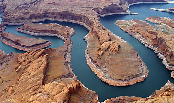 1935年建成的胡佛高壩形成的水庫,稱米德湖(MEAD),在大峽谷西端。1963年建成的GLENCANYON大壩形成POWELL湖,成為大峽谷東邊新的一處景點。這一東一西兩大壩之間,囊括大峽谷最精彩的主體。