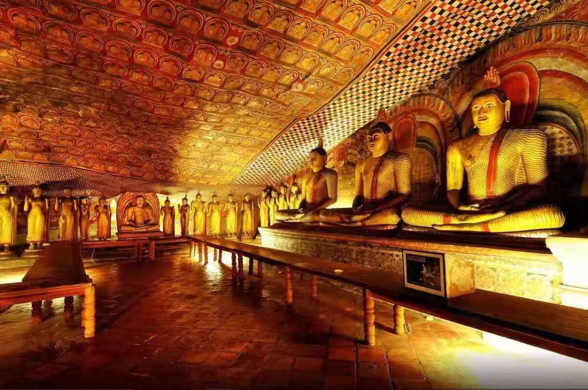 丹布勒金寺,是斯里蘭卡的朝圣之地,擁有220年的歷史。這座佛窟包括五所圣堂,是斯里蘭卡最大的、保存最完整的洞穴廟宇。覆蓋面積達2100平方米的壁畫及157尊雕像,極具宗教藝術(shù)價值,展示了佛教藝術(shù)的魅力。