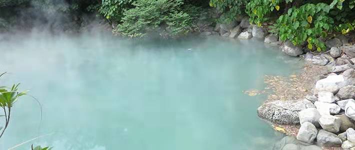 地熱谷又稱地獄谷,位于新北投公園旁,屬北投五十六號公園,占地六千八百平方公尺,為溫泉之源頭處,已經(jīng)有二百多年的歷史。
