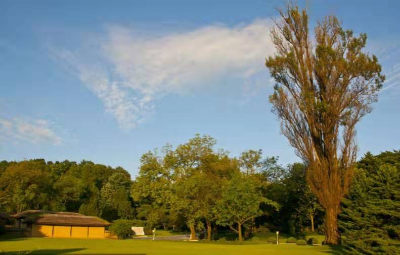萬景臺上茅草屋旁邊挺立著白楊樹,這是金亨稷先生和他的兩個兄弟在他還是一個在平壤上學(xué)的中學(xué)生時種的樹。