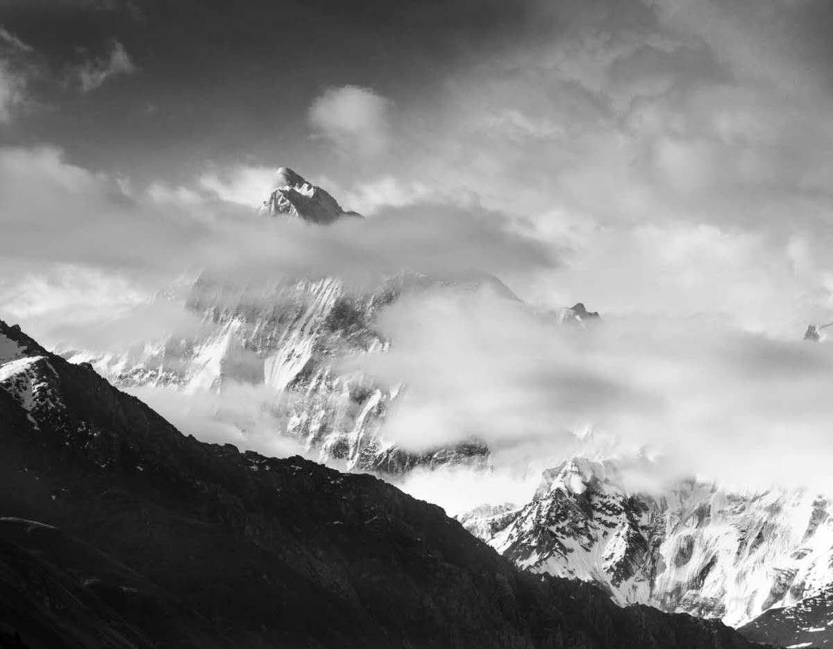 木扎爾特冰川是世界上絕無僅有的天然冰川,險隘處處,危機四伏,冰川、冰縫、冰河、冰塔、冰山以及洶涌的木扎爾特冰河都會給人難以想像的危險。我們有些凍僵了的身軀,只能依靠自己體力和毅力,在絕境處尋覓,在高海拔的冰川上艱難地前行。人行走在漫長的冰川上,就像行走在煉獄之上,如果雙腳行走不穩(wěn)或身體不能平衡支撐,就很可能帶來滑倒的生命危險。可以想像如果稍不小心一下子滑倒,跌進萬丈冰窟深淵,后果殘忍不堪。臨近傍晚,我們繼續(xù)踏著冰川前行。由于冰川的退縮,冰川末端落差很大,這短短300米的距離落差竟達500米,而這段路線是木扎爾特冰川最為艱難險峻的路段。如果想下到谷底,想都不要去想,因為此處更是危險。我們艱難地下了冰川后,就進入了南木扎爾特河谷,河谷愈來愈寬闊,時下正值夏季,冰雪在盡情地消融,近800米寬的河床到處都是水。在河的東岸,有一處100多米長,近150米高的陡壁,滔滔河水從陡壁流過,冰川由此而中斷。