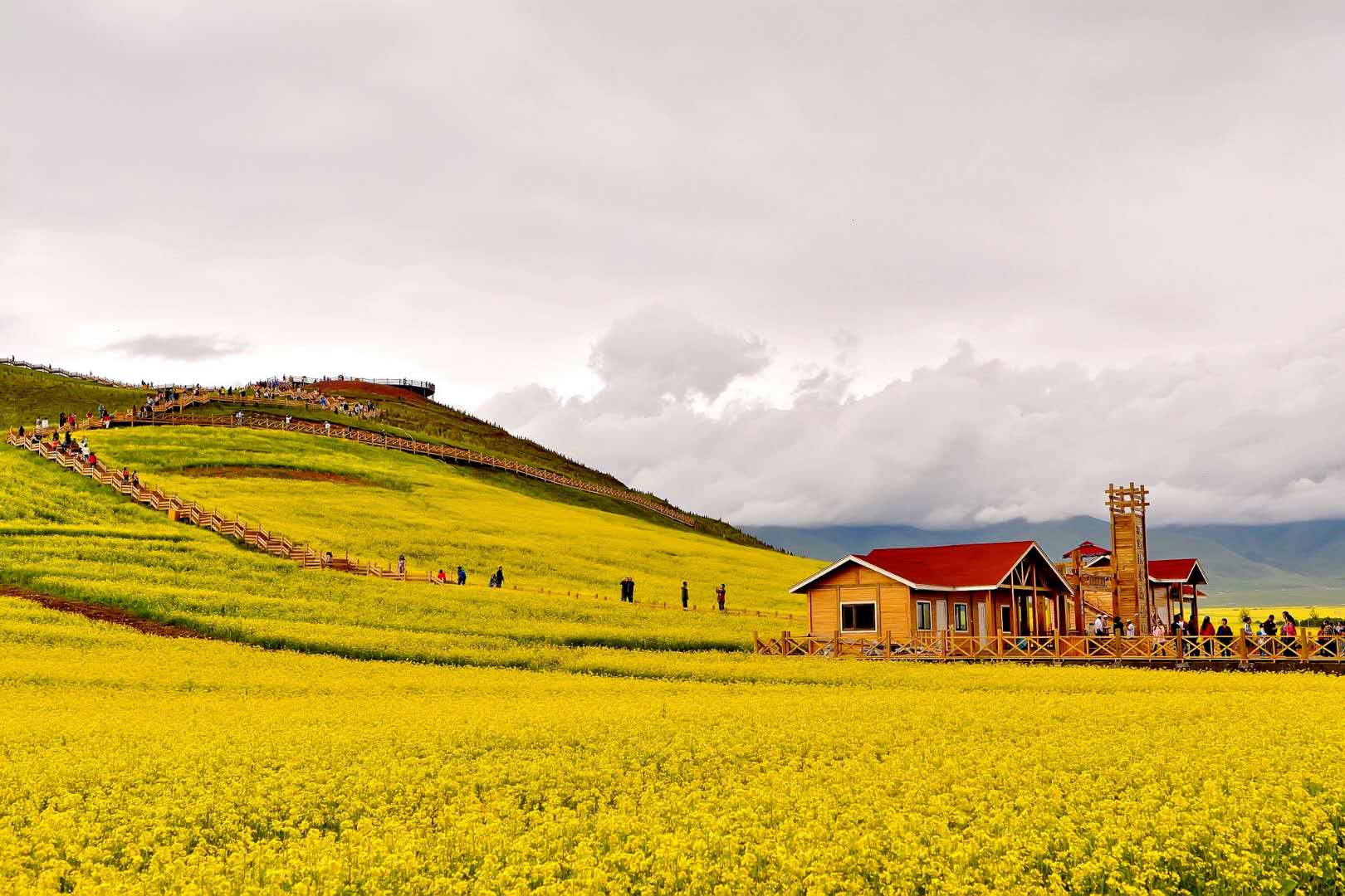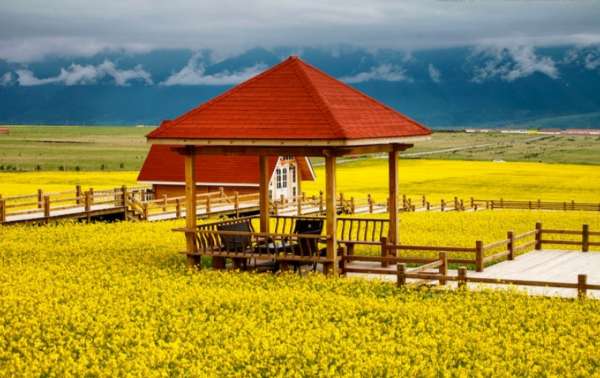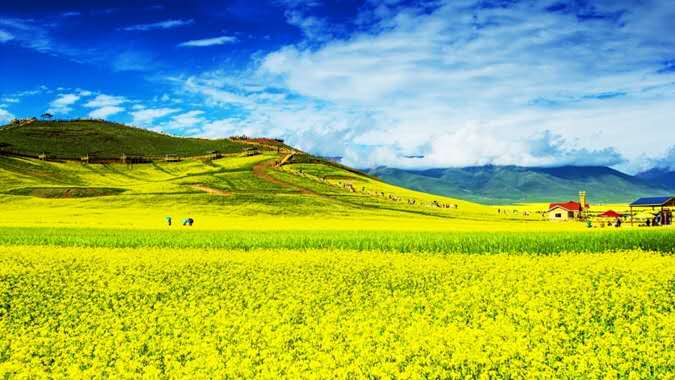 門源油菜花是指青海省海北藏族自治州的門源縣一種美麗而蔚為壯觀的人造景觀。