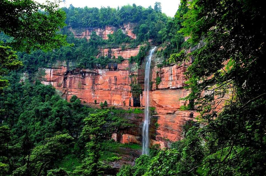 景區(qū)地處大婁山與北麓貴州高原向四川盆地急劇沉降地段,谷深坡陡、溪河縱橫、切割深度在500米至1300米之間,山峰多在1200米以上,斷巖嶂谷,高度懸殊。出露地層全是侏羅紀(jì)、白堊紀(jì)河湖相紅色沉積巖。這種特殊的地貌在差異風(fēng)化,重力崩塌、風(fēng)雨侵溶等物理生化綜合作用下,形成寶塔狀、城堡狀、針狀、柱狀、棒狀、方山狀、峰林狀等無數(shù)奇異的丹霞地貌景觀,丹巖絕壁、奇峰異石、崖廓巖穴比比皆是、多不勝數(shù),大地山崖呈現(xiàn)出紅艷艷的赤紅色彩。是我國丹霞地貌面積最大,出露最齊,特色最典型的景區(qū)。