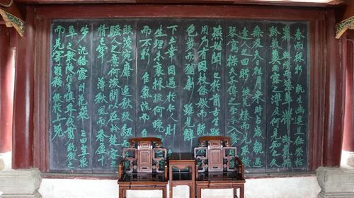 走入廟內(nèi),一樓入目皆為名人字畫木刻。 廟中不但建筑獨特,收藏的書、畫、雕、刻亦有“三絕”之譽(yù):文絕世、書法絕世,雕刻絕世。