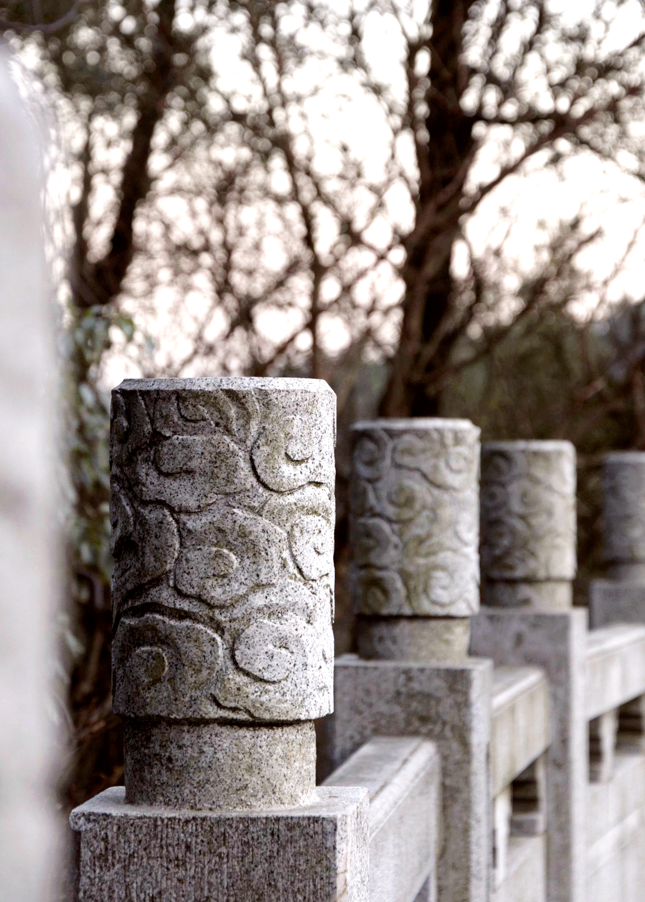 印心石屋石刻 位于白鶴泉西南、登臨云麓峰石徑的右側(cè),又名“御書亭”,今亭廢石刻仍存,系山墻上嵌的一巨幅漢白玉石匾,高0.93米、寬2.88米,中刻楷書“印心石屋”四個大字,端莊樸雅,筆力遒勁。匾左刻“道光乙未秋月”,右刻“御筆”,“太子少保兵部尚書兩江總督臣陶澍謹領(lǐng)恭摹”,正中上方刻有“道光之寶”的御璽篆章。周圍裝飾著二龍戲珠的花紋。