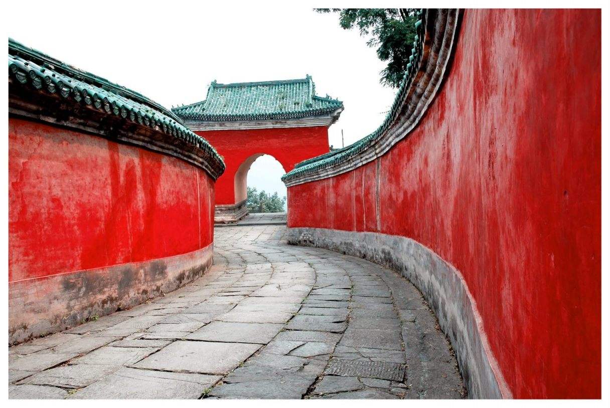 走進復真觀的山門,看到在古道上依山勢起伏建有71米長的紅色夾墻,這就是九曲黃河墻。九曲黃河墻構(gòu)思布局及用意都十分巧妙,流暢的弧形墻體,似波浪起伏,氣勢非凡;彎曲高大的紅墻,對初來乍到的虔誠香客,無疑是一次“誠信”的考驗。