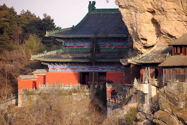 元至元二十二年至泰定五年(1285~1328年)在山中大建宮觀,南巖宮是其一?,F(xiàn)僅存宮中石殿,石雕仿木結(jié)構(gòu),殿內(nèi)有“天子臥龍床”組雕和“三清”塑像,四面環(huán)立500鐵鑄靈官塑像,均生動(dòng)逼真。殿外遠(yuǎn)近有疊字峰、金鼎峰、滴水崖、崇福崖、白龍?zhí)兜葎倬?,更有仙山樓閣之妙。版權(quán)所有山東聊城聊之旅國(guó)際旅行社有限公司,轉(zhuǎn)載必究!殿外崖前有雕龍石柱,橫出欄外2.9米,寬僅30多厘米,上雕盤龍,龍頭置一小香爐,俗稱龍頭香。石殿右下方崛起一峰,上建梳妝臺(tái)、飛身巖、相傳為“真武”舍身成仙之所。
