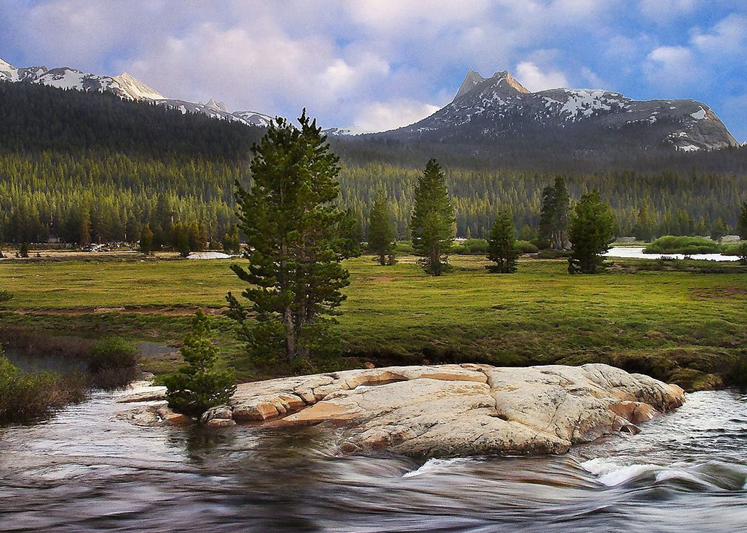 約塞米蒂國(guó)家公園的溪流是世界上最著名、最有趣的溪流,它們吸引著一批又一批慕名而來(lái)的旅游者,穿行在妙趣橫生的峽谷中,年復(fù)一年,樂(lè)此不疲。較大的溪水與河流以其桀驁不馴的能量在峽谷間展現(xiàn)著它們的清澈與秀美。在泡沫飛濺的寬闊的平地上,水流以平緩的斜度呈梯極傾瀉而下,隨處泛起美麗的旋渦,四濺的水霧在陽(yáng)光中幻出彩虹;在沖過(guò)崎嶇的峽谷與擋在河道上的巨石時(shí),水石相擊的轟鳴久久回蕩。在瀑布上,水勢(shì)洶涌、奔放豪邁,而在穿過(guò)綠蔭掩映的長(zhǎng)長(zhǎng)的森林流域時(shí),水流卻變得平緩舒暢,水光如銀、水聲如訴,使大峽谷中充滿了美妙的歌聲,使萬(wàn)物充滿了生機(jī)。