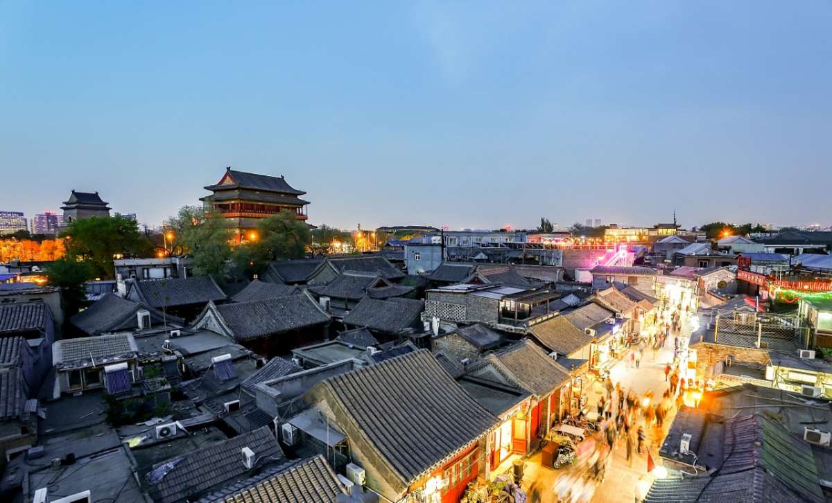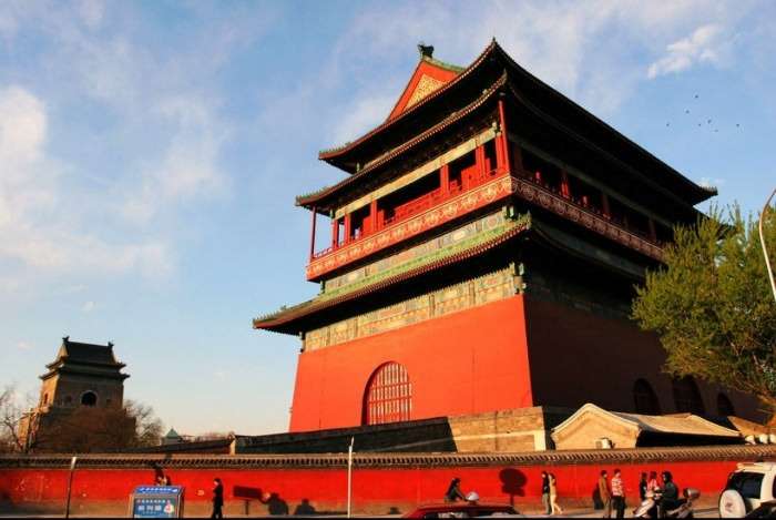 北京鼓樓是坐落在北京市南北中軸線北端的一組古代建筑,位于北京東城區(qū)地安門(mén)外大街北端。