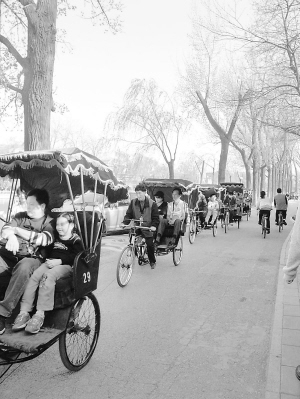 什剎海的“胡同游車夫”會載著你鉆過大大小小的胡同,一一到達他介紹過的景點,并且承諾,如果你想進去游覽,他會在門口守候。這種形式,頗受外國游客歡迎,因為他們很怕迷失在胡同里。據(jù)“胡同游車夫”介紹,老胡同就像個迷宮,尤其是在什剎海。所以,往那些飛奔的三輪車里望去,還是韓國、日本、美國游客居多。