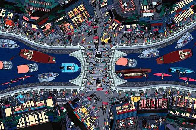 “30BAR”的墻面也足夠吸人眼球,黃、粉、紅、黑四條彩繪鯉魚,縱橫穿梭在墻上。不遠處,一家名為“Thirty one Coffee”的后海酒吧,黑色墻體上印滿英文字母,穿著玫紅T恤的“waiter”從店里走出,昭示著現(xiàn)代的細節(jié)。后海酒吧的另種意義,可能還在于文化的融合與接納。