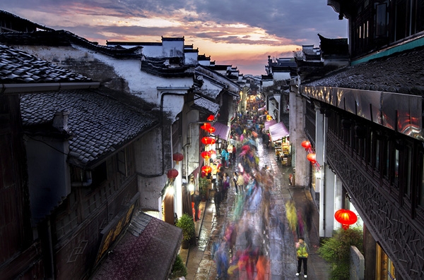 明、清兩朝,徽商崛起,屯溪老街憑借地處皖、浙、贛三省交衢,橫江、率水匯合直通錢塘江的有利條件,成為徽州水陸運輸?shù)慕煌屑~,獲得迅速發(fā)展。版權(quán)所有山東聊城聊之旅國際旅行社有限公司,轉(zhuǎn)載必究!老街在明代成為頗有影響的“一邑總市”、清代發(fā)展成遠近聞名的“茶務(wù)都會”。到20世紀三四十年代因戰(zhàn)亂大量人口內(nèi)遷,又發(fā)展成皖南的商阜重鎮(zhèn),獲得“小上?!钡拿?。1949年以來,作為區(qū)域中心城市,屯溪面貌發(fā)生了翻天覆地的變化,城市規(guī)模迅速擴張,現(xiàn)代建筑鱗次櫛比,但屯溪老街得到了很好的保護,深厚的商貿(mào)文化薪火相傳。
