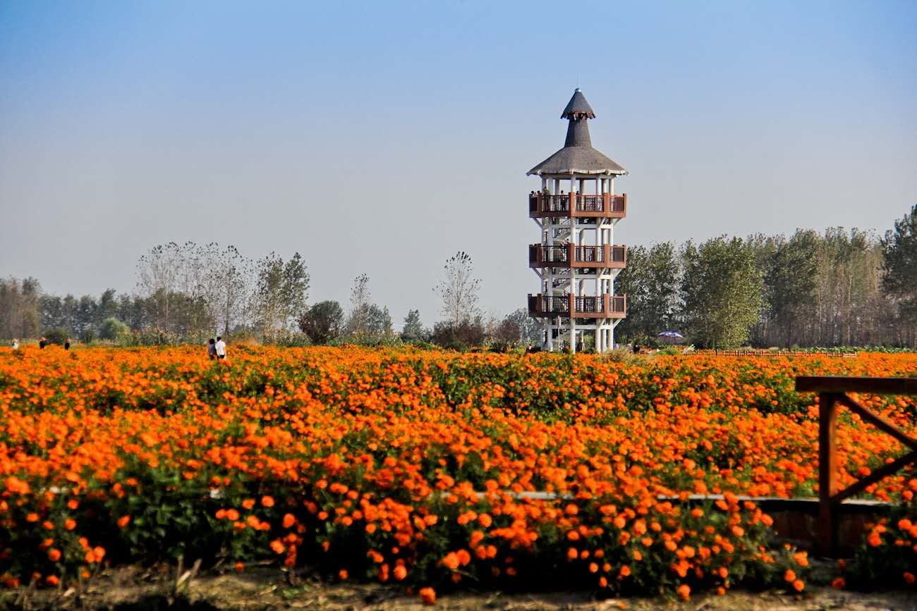在每年秋季,千垛景區(qū)上長(zhǎng)滿了萬壽菊,因此有了”春看菜花秋賞菊‘的絢麗畫面。