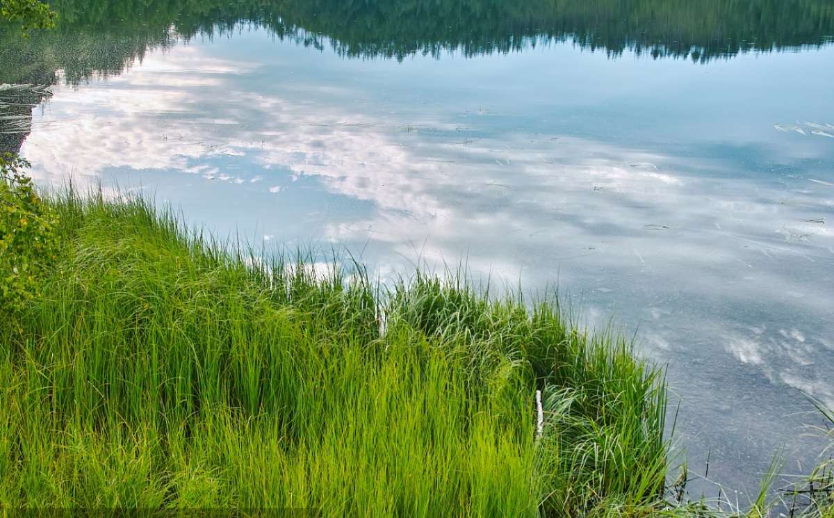 湖呈鍋底狀,湖面呈橢圓形,水平如鏡,一泓碧波。四周綠樹蔥蘢,有錯落的杜鵑、白樺和參天古松。池面不降不溢,無外流缺口,象一塊晶瑩的藍寶石,鑲嵌在巍峨的峰巒之巔。長白山天池有出口沒入口,天山天池有入口沒出口,阿爾山天池既無出口又無入口。阿爾山天池是火山噴發(fā)后火山口積水形成的火山口湖,因天池水既沒有河流注入,也沒有河道泄出,形成一種封閉式特殊類型火山口湖瑪珥湖。阿爾山天池無論旱季還是濕季,水位始終不變,而且天池的深度也從來沒有被測量出來過。