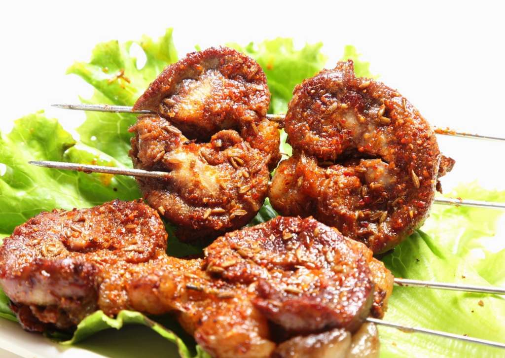 烤全羊 原始的烤全羊,是將去皮開膛的整羊架于火上烘烤。燒烤時要用杏木疙瘩燒旺的紅火,火硬而無煙方可。用手將白條羊在火上左右翻轉(zhuǎn),一直烤到表面焦黃,油滴外滲,香味噴發(fā),里外皆熟為止??臼旌髲募茏由闲断拢玫陡疃持?,既不加油鹽,也不加其他作料。后來,烤全羊變了一種做法,即先把洗凈的全羊放在淡鹽水里或配有調(diào)料的料湯中浸泡,然后放大鍋里煮至半熟,最后再架于火上燒烤。但這種吃法失去了原始烤全羊純樸天然的香味,其實不能算作地道的烤全羊。因為烤全羊費(fèi)工費(fèi)時,所以即使是蒙古人也不常食用,只有貴客臨門時,才作為宴客的佳肴予以制作。比烤全羊簡單一些的是烤羊腿或烤羊尾,做法與烤全羊相同??竞玫难蛲?,肉絲焦嫩鮮美。版權(quán)所有山東聊城聊之旅國際旅行社有限公司,轉(zhuǎn)載必究!羊尾全是白花花的肥肉,在火上烘烤一段時間后,油汁大都滲出來,剩下的肉質(zhì)纖維脆而不糊,油而不膩,是蒙古族宴席上的一道傳統(tǒng)名菜。