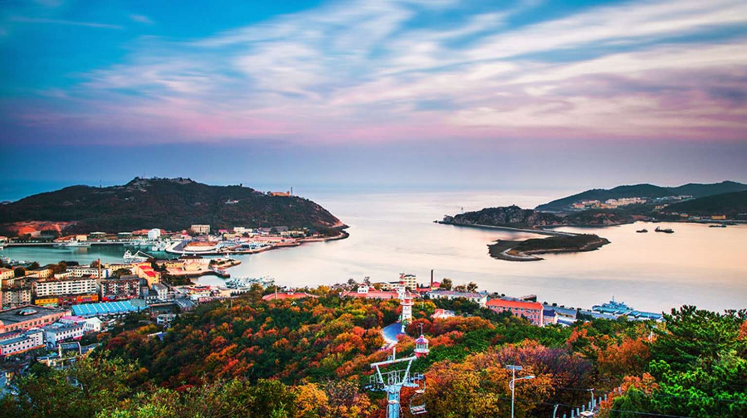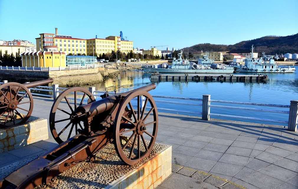 旅順軍港地處遼東半島西南端,黃海北岸。港口門開向東南,東側(cè)是雄偉的黃金山,西側(cè)是老虎尾半島,西南是巍峨的老鐵山,周圍環(huán)守旅順港,天然形勝被譽(yù)為“天下奇觀”。