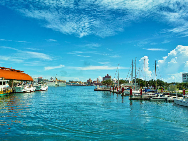 它的港口的地理形勢十分優(yōu)越,是利用自然瀉湖修建而成的。港區(qū)外側(cè)有一條西北-東南向的沙洲,即旗津半島,長達(dá)11.3公里,平均寬達(dá)200米,如同一條巨龍蜷臥在臺灣海峽的碧波中,成為一位天然的防波堤,為高雄港遮風(fēng)避浪。壩內(nèi)港闊水深,清波蕩漾,壩外駭浪洶涌,水天相連。港區(qū)的西北端,有一缺口,寬136米,與外海相連,這就是高雄港的第一港口-旗后港口。由于兩側(cè)聳立著壽山和旗后山,形成兩山夾峙,形勢極為險要。但因?qū)挾扔邢蓿?萬噸以上的貨輪不能進(jìn)入。1967年,在旗津半島市面的崩隙處,又修筑了第二進(jìn)出口。其寬度為250米,水深16米,可供10萬噸級的輪船出人。港區(qū)內(nèi)設(shè)有深水碼頭16座,淺水碼頭4座,登陸艇碼頭2座和3個貨柜儲運(yùn)中心。港內(nèi)各種船只云集,進(jìn)進(jìn)出出,十分繁忙。