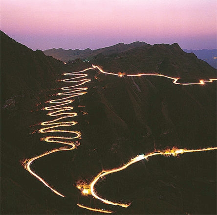 二戰(zhàn)時(shí)期,美國(guó)的援華物資經(jīng)過滇緬公路到達(dá)昆明以后必須要經(jīng)“二十四道拐”的滇黔線才能送到前線和重慶。二十四道拐成了中緬印戰(zhàn)區(qū)交通大動(dòng)脈,承擔(dān)著國(guó)際援華物資的運(yùn)輸任務(wù)。日寇曾多次派飛機(jī)對(duì)二十四道拐公路進(jìn)行轟炸,欲截?cái)嗲嵫屎怼?/span>美軍搶修后保留至今的二十四道拐公路,全長(zhǎng)4公里,有效路面寬約6米,山腳第一道拐與山頂?shù)诙牡拦臻g的直線距離約350米,垂直高度約250米,坡的傾角約60度左右,驅(qū)小汽車由下至上,爬完24道拐約需8分鐘,由上至下約6分鐘,雖坡陡彎急,但無(wú)驚恐之感?,F(xiàn)由縣公路局養(yǎng)護(hù),仍可通車,但只有少量車輛通行。