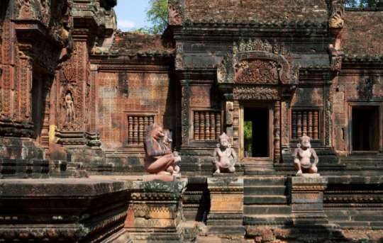 建于十世紀(jì)的女皇宮,充分展現(xiàn)了吳哥時(shí)期高超的雕刻功力,細(xì)膩而傳神的刻畫,代表了吳哥人民的藝術(shù)天份,與對(duì)宗教的信仰熱忱。紅色的石墻,生動(dòng)的故事,交織出一幅幅柔美的圖畫,不斷訴說(shuō)著印度史詩(shī)中的各個(gè)章節(jié);透過浮雕的傳達(dá),前人藉此留下印記,即使是過了幾個(gè)世紀(jì)之久,后代的人們都還能從中讀出一二,歷史不朽也就是如此了。
