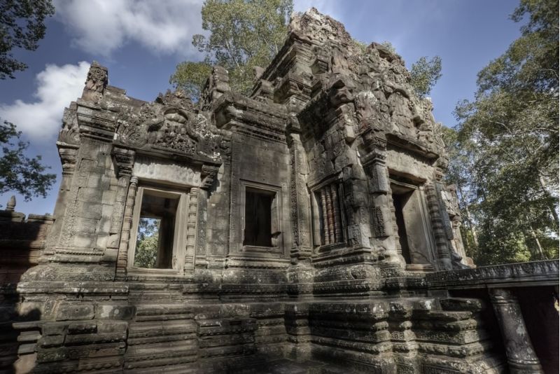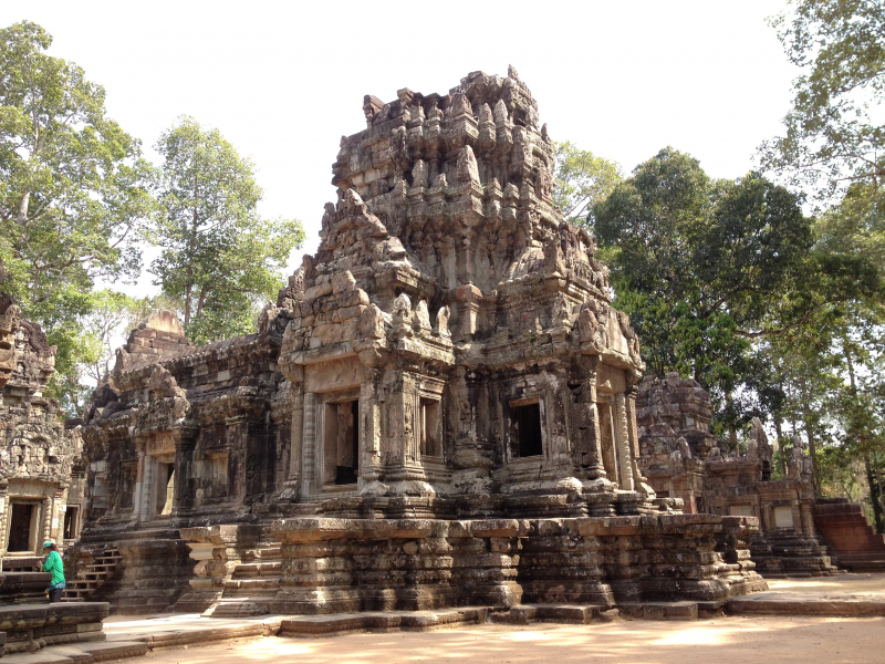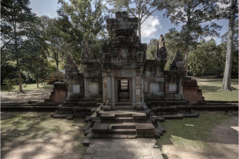 周薩神廟為印度教寺廟,屬小吳哥建筑風(fēng)格。是吳哥古跡中一座較小的寺廟,然而其建筑布局所反映出來的宗教內(nèi)涵又獨(dú)具特色: