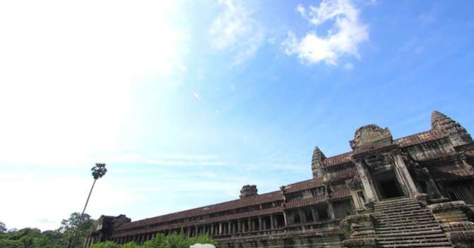 涅盤宮(Neak Pean)的意思是纏繞的巨蛇,就這么小小的神廟,在水中央,在藍(lán)天白云的襯托下,亭亭玉立,美得像一顆水中明珠。