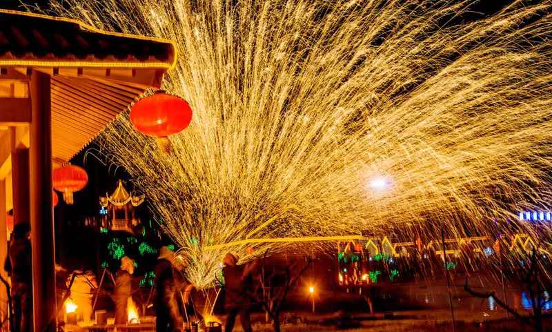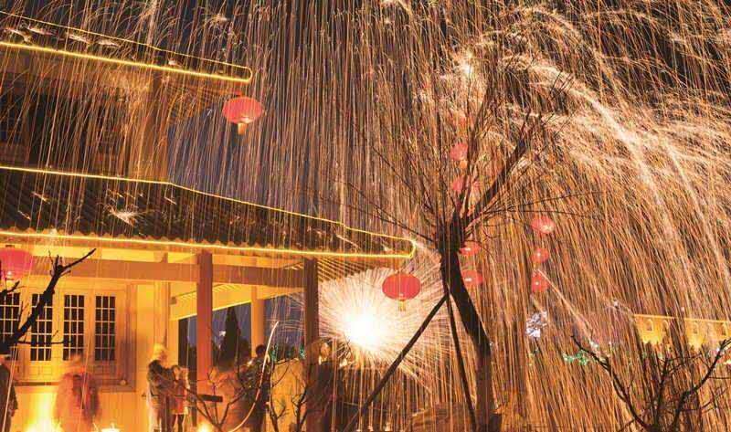 夜幕降臨時(shí)才是文化節(jié)的高潮部分,春節(jié)期間,省級(jí)非物質(zhì)文化遺產(chǎn)千年絕技“打鐵花”在司徒小鎮(zhèn)內(nèi)的人工湖廣場(chǎng)精彩上演,民間匠人用熔爐將生鐵熔化成數(shù)千攝氏度的鐵汁,拋起用力擊向天空,朵朵鐵花如天女散花,絢麗奪目,夜空之下,火星璀璨,帶來(lái)的是紅火和驚詫,也帶來(lái)了希望與憧憬,吸引大量游客前來(lái)觀看。最高峰時(shí)期,單日游客量最高達(dá)十五萬(wàn)人,創(chuàng)造了多項(xiàng)晉城市城區(qū)景區(qū)接待量的新記錄,令周邊游客度過(guò)了一個(gè)熱熱鬧鬧的新年。