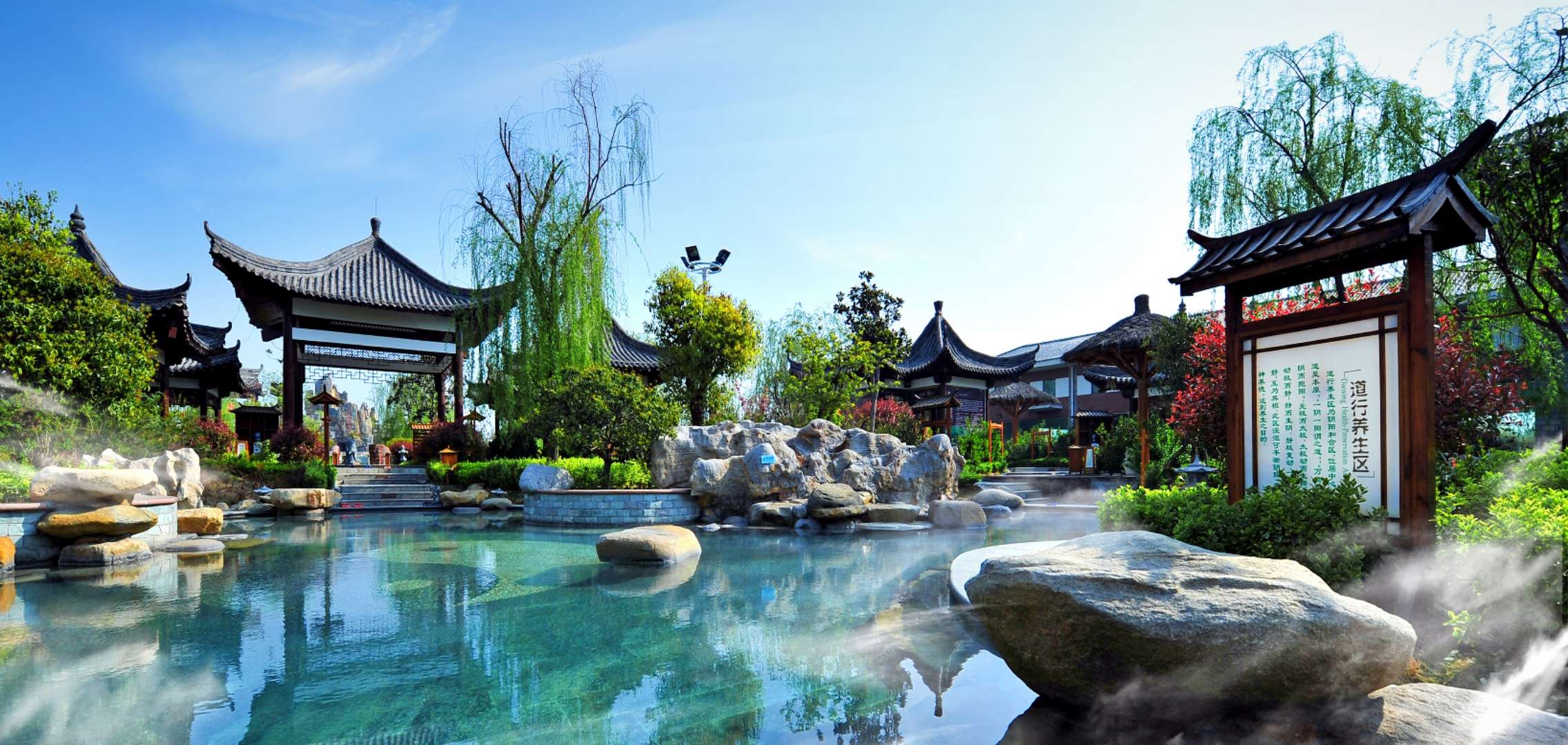 智圣湯泉溫泉日出水量達10000多噸,水溫高達78℃,富含偏硅酸、氟、碘、溴、鋰、鍶等30多種有益人體健康的礦物質(zhì)微量元素。溫泉區(qū)設(shè)有動感溫泉區(qū)、先天八卦養(yǎng)生區(qū)、孔明文化區(qū)、生態(tài)溫泉區(qū)、室內(nèi)大型SPA水療、泳池區(qū)等60多個功能各異、大小不一的各類溫泉池。版權(quán)所有山東聊城聊之旅國際旅行社有限公司,轉(zhuǎn)載必究!可同時容納2000多人沐浴,日接待量可達5000多人。特別是先天八卦是人皇伏羲根據(jù)天、地、水、火、風(fēng)、雷、山、澤八種自然現(xiàn)象所創(chuàng),被稱作中華“無字天書”。 按先天八卦方位打造的溫泉池可以調(diào)節(jié)人體內(nèi)陰陽平衡,以達到強身健體之功效,為華東規(guī)模最大及全國首創(chuàng)。同時溫泉中心為賓客免費提供休息大廳、健身房、乒乓球室、網(wǎng)吧、沙壺球、臺球等多種休閑娛樂項目及水果、點心飲品等。讓您真正體驗休閑和放松的樂趣。詩人王心鑒有詩贊其“竹影泉”,直言智圣湯泉的妙處:偶浴竹影泉,直入逍遙鄉(xiāng)。天風(fēng)沐芳草,靈石倚幽篁。澄懷共云游,息心但坐忘。結(jié)廬在此境,長居待天荒。
