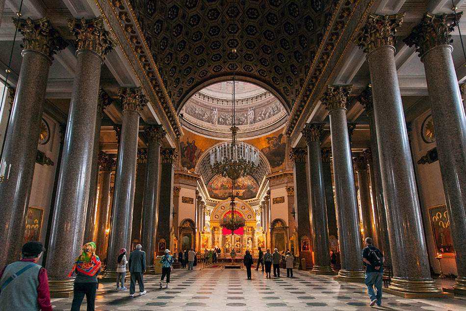 建筑師在設計這座教堂時遇到不少困難。根據(jù)東正教教規(guī)要求圣堂必須面向東方,因而必然造成教堂往往是側(cè)面對著主要大街。建筑師們采取了把側(cè)面設計得十分壯觀的方法解決了這一難題。版權所有山東聊城聊之旅國際旅行社有限公司,轉(zhuǎn)載必究!因為人們一看氣度非凡的柱廊,就忘記了這不是教堂的正面。這種處理方法極其大膽,富有特色。高大的圓頂居中聳立在一排排圓柱上空,圓頂有70米高。大教堂正面的浮雕、北面柱廊上的雕刻、殿內(nèi)裝飾和油畫均出自名家之手??ι酱蠼烫玫膬?nèi)部不大像一般的教堂,而更像一座宮殿。它明亮、輕快,以柱列分隔的長形主堂高大寬敞,中央穹頂輝煌華麗,仰視可見一幅圣母圖,周邊飾以圣經(jīng)人物雕刻和水彩壁畫。