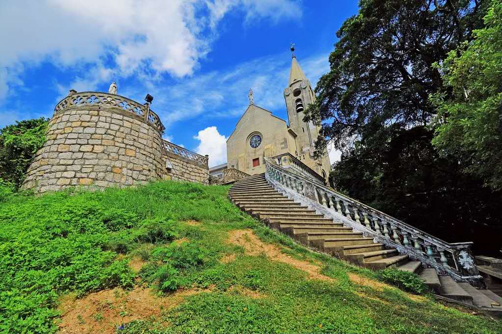 教堂四周花徑通幽,古樹濃蔭,建筑端麗,環(huán)境優(yōu)美,更可居高臨下,環(huán)視南西灣和中國大陸珠海市灣仔的風光,成為中外游客喜到的熱門觀光點之一。