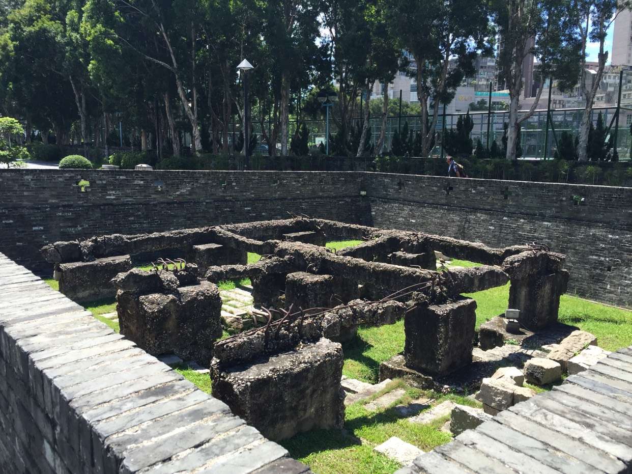 踏進(jìn)公園南門(mén),兩旁灰色的四方磚柱上,分別有“九龍寨城”和“南門(mén)”的大字鐫刻。繞過(guò)刻有公園碑記的照壁,景物豁然開(kāi)朗,一座三進(jìn)的衙門(mén)映入眼簾。這是寨城內(nèi)惟一保留下來(lái)的古建筑,修葺后回復(fù)本來(lái)的面貌,立于公園中心。衙門(mén)前有古炮兩尊,西側(cè)尚存一方古井。衙門(mén)內(nèi)陳列著一些在寨城中發(fā)掘出來(lái)的文物,包括刻有大鵬協(xié)副將張玉堂拳書(shū)“墨緣”和“壽”字的兩塊石碑等。衙門(mén)大堂還陳展著1902年寨城的平面圖,圖文并茂地介紹寨城的歷史和公園興修的經(jīng)過(guò)。