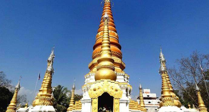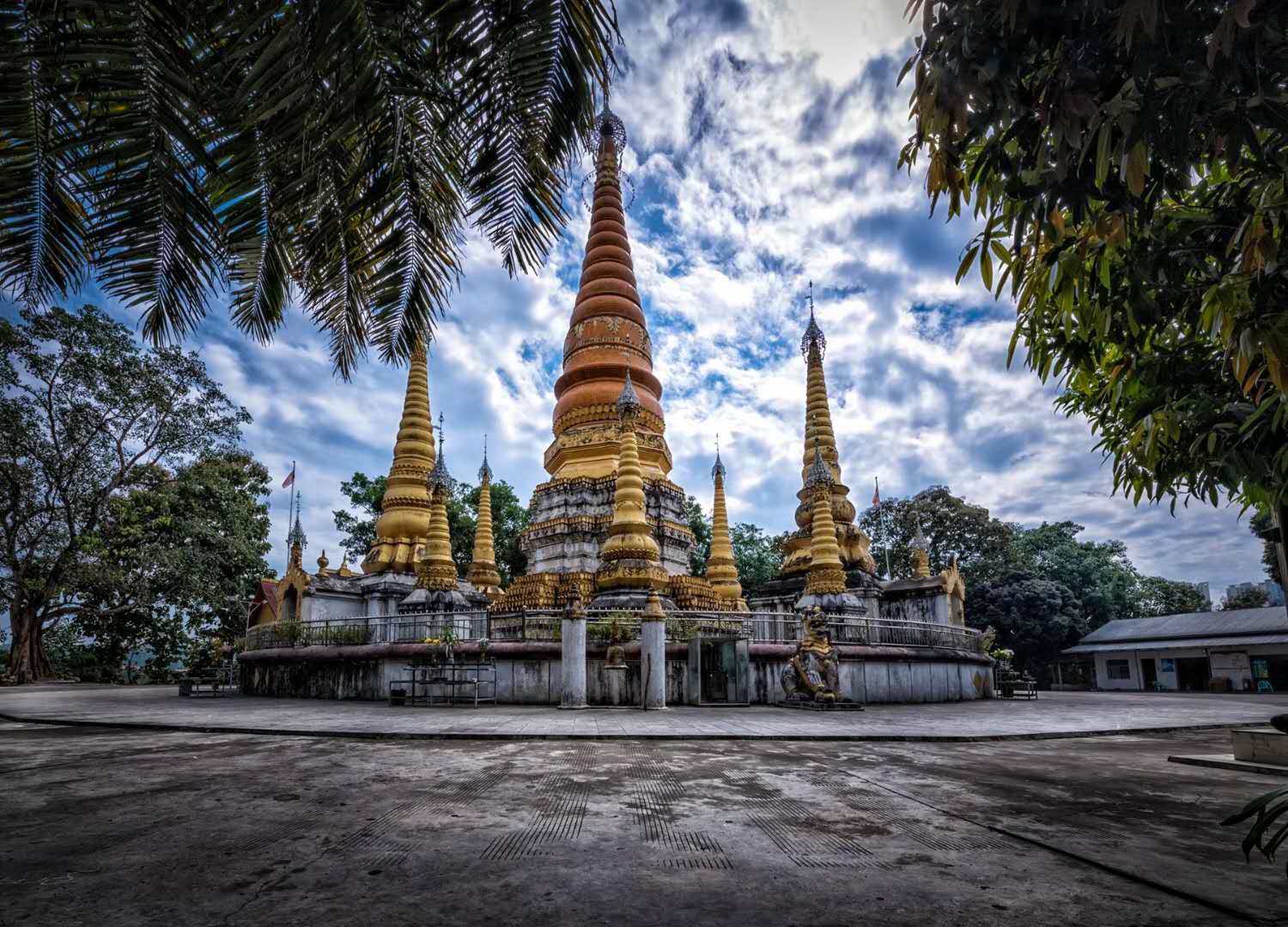 姐勒大金塔姐勒金塔始建于17世紀,由17座塔組成的群塔,塔身貼滿金色磁磚,除主塔外,四周環(huán)繞著16座小塔,塔身均涂金粉,金碧輝煌,如眾星拱月,雄偉壯麗。 塔基用長方青石建成,塔群為鋼混結構,主塔高39.5米,塔身為正八棱形,呈圓錐體,貼滿金色瓷磚,頂尖軒有電化鋁制成的寶傘、風標,系著上百只風鈴。版權所有山東聊城聊之旅國際旅行社有限公司,轉載必究!遠遠望去,金光耀眼的金塔,掩映在大青樹群之中,微風吹來,鈴聲叮當悅耳,反映出傣族工匠數(shù)百年前,獨具民族特色的建筑構思和藝術成就。此塔是東南亞的著名佛塔之一,旁有佛寺供奉。每年的潑水節(jié),都要舉行3天隆重的佛會,非常熱鬧。