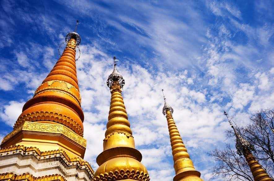 中文名姐勒金塔傣語廣母賀卯釋義在壩子馬頭的塔屬性瑞麗最古老的佛教建筑地點瑞麗。