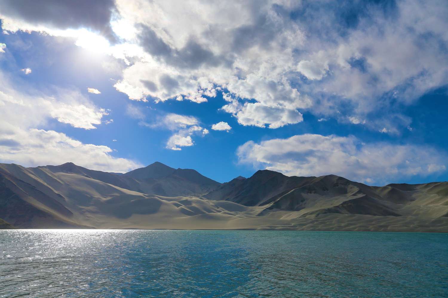 “卡拉庫里”意為“黑?!保0?600米,湖深30米,總面積10平方公里,是一座高山冰蝕冰磧湖。水面映襯著巍峨又神秘的慕士塔格峰,白雪皚皚,山水同色,景色十分迷人。