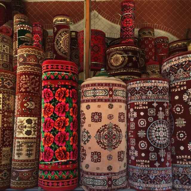 街道兩旁是匯集了上百家的手工作坊。漫步其中,鐵藝、木藝、皮具一類也并不讓人感到奇特,然而沙畫、刺繡、傳統(tǒng)樂器等手工藝品可就不由得您多看兩眼。說的再好,也有說不出的好;說的再全,也會有遺漏的珍品。畢竟這兒的手工作坊,生產(chǎn)的東西是五花八門,甚至于在那不起眼的小角落里坐著的老人,都可能是某個手工制作領域的專家,一時興起,隨手就做得出一件令人喜愛的活計。歷史的煙云為喀贊其蒙上了一層古樸與神秘的色彩。工匠、作坊,手工制品,因為一輩輩的懷著執(zhí)著的傳承者存在,才會沒有隨著歲月而去。在這個好似鄉(xiāng)間的古老城區(qū),似乎一切都停留在從前的某個時候。圖為喀贊其的藝人正在手工制作樂器。