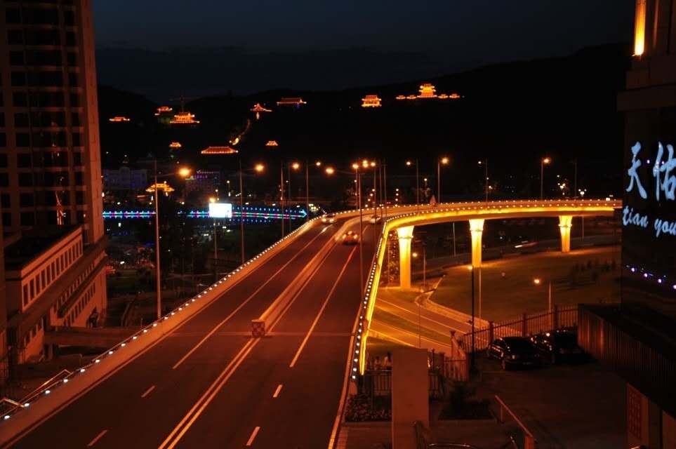 綏芬河新華街斜拉大橋 由中鐵十八局集團(tuán)二公司承建的總重量14000噸的斜拉橋——黑龍江省綏芬河市新華街立交橋,日前成功的水平轉(zhuǎn)過70.2度角,經(jīng)檢測,該橋平轉(zhuǎn)后的軸線誤差僅為3毫米,完全滿足設(shè)計(jì)要求。這標(biāo)志著獨(dú)塔、單索面、單點(diǎn)、平鉸、水平轉(zhuǎn)體施工的中國最大跨度斜拉橋轉(zhuǎn)體成功。大橋建成后,將老城區(qū)和西城區(qū)緊密聯(lián)系在了一起,確保市區(qū)交通順暢,同時(shí)還促進(jìn)了城市的平衡迅猛發(fā)展,使中心區(qū)人口向西城區(qū)疏散,緩解中心區(qū)人口密度和交通壓力。