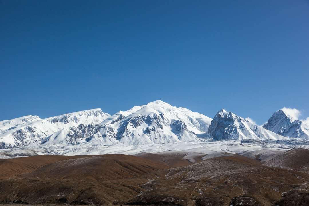 公格爾峰:與慕士塔格峰遙遙相望的是公格爾峰,公格爾九別峰,海拔分別為7649米,7530米,是昆侖山最高峰和次高峰,山頂常年積雪,山間懸掛著條條冰川,猶如飛流直下的銀瀑,又似隨風(fēng)飄逸的素練。
