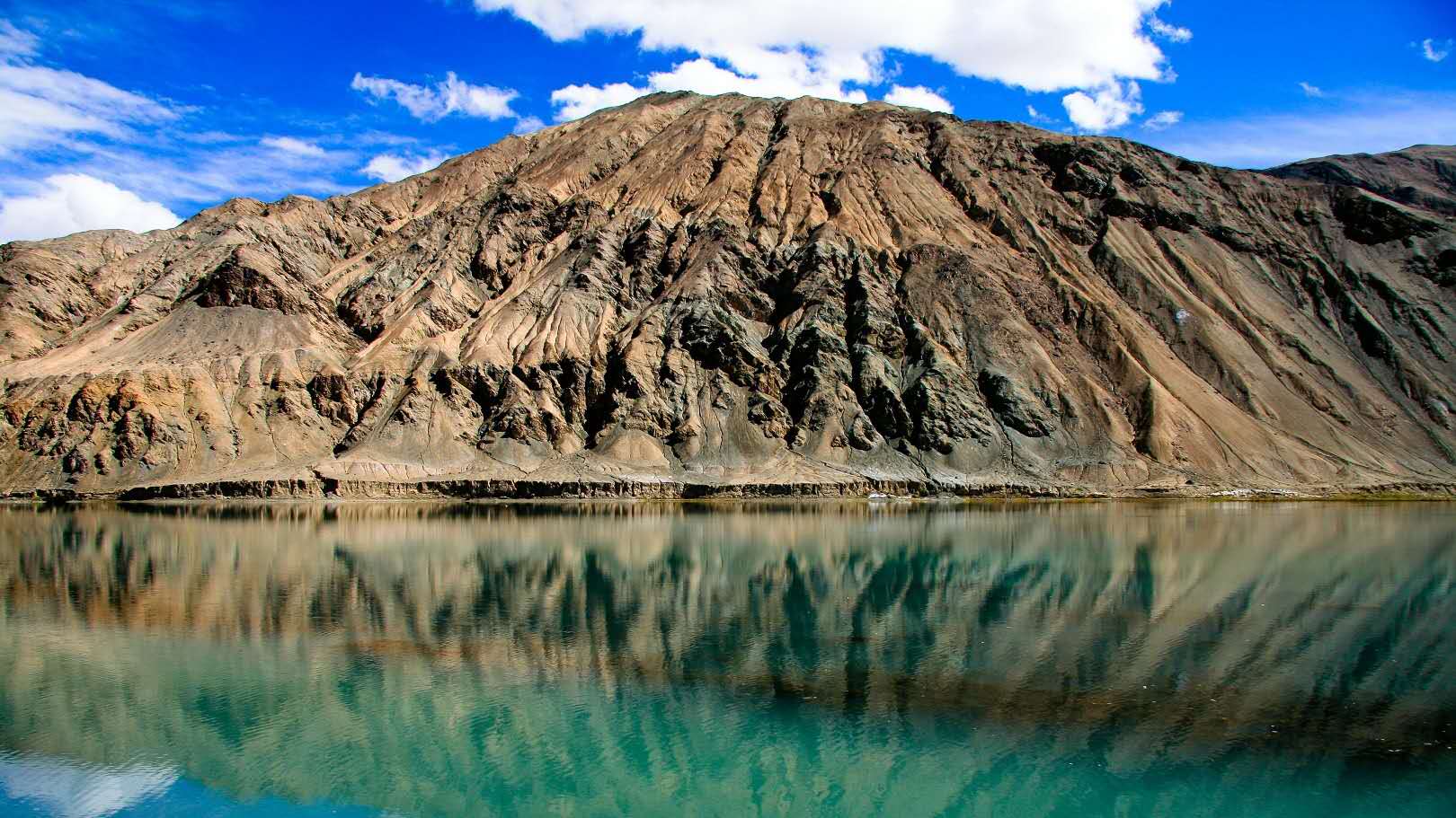 東帕米爾地形較開闊坦蕩,由兩條西北—東南方向的山脈和一組河谷湖盆構(gòu)成,絕對高度5000米~6000米。相對高度不超過1000米~1500米,山體渾圓,山脈被寬淺的河谷分割,在海拔4000~5000米高處有冰磧平原和荒漠平原。