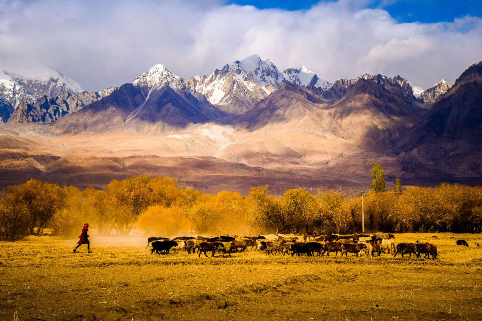 東帕米爾高海拔地區(qū)的牧業(yè)主要是牦牛和有關(guān)雜交品種、綿羊和山羊;大麥和馬鈴薯、豆類、油菜籽和根菜是這一地區(qū)的主要農(nóng)作物。在西帕米爾谷地,政府指令種植棉花和其他農(nóng)作物。版權(quán)所有山東聊城聊之旅國際旅行社有限公司,轉(zhuǎn)載必究!大果園——主要是蘋果園、梨園和杏園,以及葡萄園——分布于西部許多海拔在1,524~1,981公尺(5,000~6,500呎)之間的谷地和丘陵。小麥?zhǔn)侵饕Z食,玉蜀黍?yàn)槎局饕暳?。牛正在取代綿羊和山羊,成為西部谷地的主要牲畜。