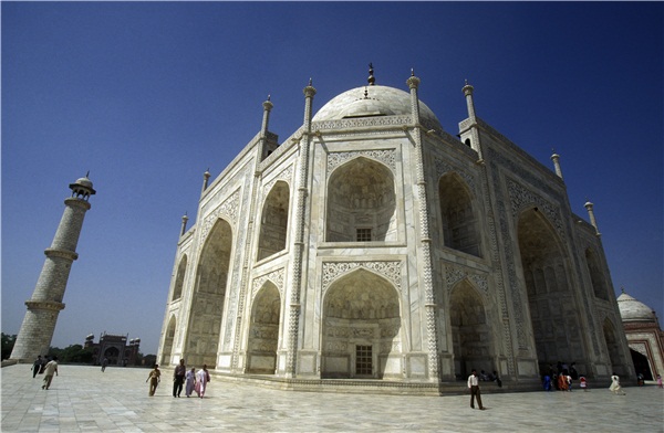不到長(zhǎng)城非好漢,不到泰姬陵就沒(méi)到過(guò)印度。泰姬陵(Taj Mahal)位于阿格拉郊外。印度的泰姬陵是世界七大建筑奇跡之一,泰姬瑪哈陵(Taj Mahal),亦稱(chēng)泰姬陵。是莫臥兒帝國(guó)第5代君主——沙·賈汗(Shah Jahan)對(duì)他心愛(ài)的皇后慕姆塔茲·瑪哈爾(Mamtaz Mahal)之愛(ài)的見(jiàn)證。泰姬陵的建造背后其實(shí)有一段動(dòng)人的故事,話說(shuō)沙·賈汗與皇后結(jié)婚19年,皇后在1630年第14次生產(chǎn)中去世,臨終前向皇上要求了4個(gè)承諾,其中一項(xiàng)便是為她建造一座人人可瞻仰的美麗陵墓。于是沙·賈汗便耗資500萬(wàn)盧比,以2萬(wàn)名工匠,花了22年時(shí)間,完成了這座震驚世人的大理石藝術(shù)建筑,作為愛(ài)妃長(zhǎng)眠之所。1633年,泰姬陵在沙·賈汗選中的印度北部亞穆納河轉(zhuǎn)彎處的大花園內(nèi)開(kāi)始動(dòng)工興建。此處位于亞穆納河下游,十分空曠,沙賈汗可以從河上游的阿格拉城堡上遠(yuǎn)遠(yuǎn)地望見(jiàn)。建筑學(xué)和珠寶最受沙賈汗喜愛(ài),因此,他選用大理石建造泰姬陵,并以十分精巧的手藝在大理石上鑲嵌無(wú)數(shù)寶石作裝飾。本國(guó)以及波斯、土耳其、阿拉伯巴格達(dá)的建筑師、鑲嵌師、書(shū)法師、雕刻師、泥瓦工共計(jì)兩萬(wàn)多人參與了泰姬陵的建設(shè)。此工程選用了本國(guó)的大理石,中國(guó)的寶石、水晶和玉,巴格達(dá)和也門(mén)的瑪瑙,西藏的綠寶石,斯里蘭卡的寶石,阿拉伯的珊瑚等。泰姬陵隨著季節(jié)、時(shí)間的變化而變化。黎明時(shí)分,泰姬陵呈現(xiàn)出粉紅色,似綻放的花朵;中午,泰姬陵呈白色,光芒耀眼;傍晚,泰姬陵呈灰白色,色澤柔和似珍珠。在圓月退去、星斗閃爍天氣里,泰姬陵可呈現(xiàn)出白色、虎珀色、灰色、金黃色。在陰云密布的天氣里,泰姬陵似冬季空中漂浮的薄霧中的海市蜃樓忽隱忽現(xiàn)。建筑特色:泰姬陵占地甚廣,由前庭、正門(mén)樓、莫臥兒花園、陵墓主體以及兩座清真寺所組成。版權(quán)所有山東聊城聊之旅國(guó)際旅行社有限公司,轉(zhuǎn)載必究!陵墓主殿四角都有圓柱形高塔一座,特別的地方是每座塔均向外傾斜12度,若遇上地震只會(huì)向四方倒下,而不會(huì)影響主殿。無(wú)論在任何角度望去,純白色的泰姬陵均壯麗無(wú)比,造型完美,加上陵前水池中的倒影,就像有兩座泰姬陵互相輝映,難怪被譽(yù)為世界七大奇觀之一。泰姬陵建筑集中了印度、波斯的建筑藝術(shù)特點(diǎn),整個(gè)布局完美、和諧,是建筑史上不可多得的杰作。