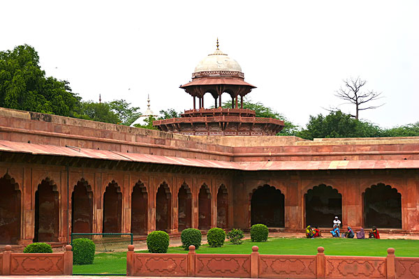 阿格拉宮始建于1565年,后經(jīng)第五代帝王沙·賈汗改建。因系用紅砂石筑成,故有“紅堡”之稱(chēng)。宮內(nèi)樓臺(tái)殿宇優(yōu)美別致,有畫(huà)棟雕梁的覲見(jiàn)宮,有豪華壯觀的樞密宮和別具一格的鏡宮。鏡宮的墻壁和天花板上鑲嵌了成千上萬(wàn)塊玻璃,閃閃耀眼。阿格拉宮附近還有全用白大理石砌成潔白如雪的泰吉·瑪哈爾陵。此外,城內(nèi)還有莫臥兒王朝賈汗吉爾大帝皇后努爾·賈汗為她父親修建的伊提馬德·道拉陵墓以及莫臥兒王朝第三代帝王阿克巴陵墓和法塔赫布爾西格里古堡等文物古跡。