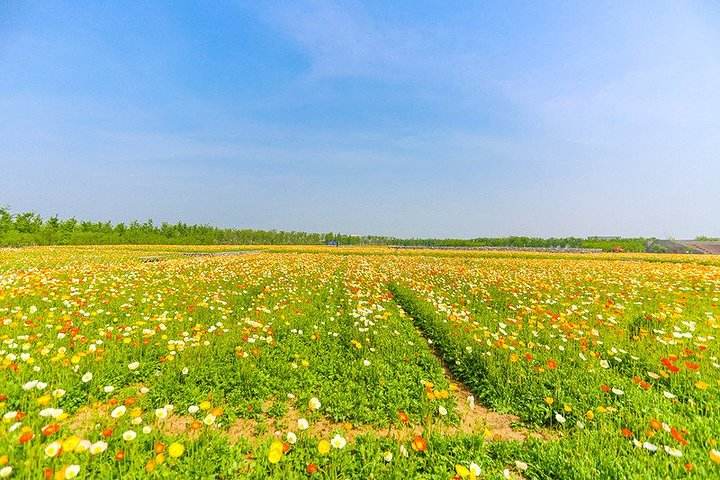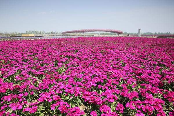 公園內的“衲田花?!?,總面積2220畝,由612塊花田 “縫補”拼接而成,融合了北方旱梯田的雄渾和南方水梯田的俊秀,與僧人袈裟異曲同工,又兼具納祥聚福之意,樸質卻熠熠生輝。這里栽植著50多種花卉,自南向北形成黃、紅、紫三大色區(qū),呈現(xiàn)出海納百川之態(tài)、兼容并蓄之美。站在全長2.3公里的彩虹橋俯瞰花海,聽花開花落,嗅濃郁芬芳,感受濃濃的原鄉(xiāng)情懷。